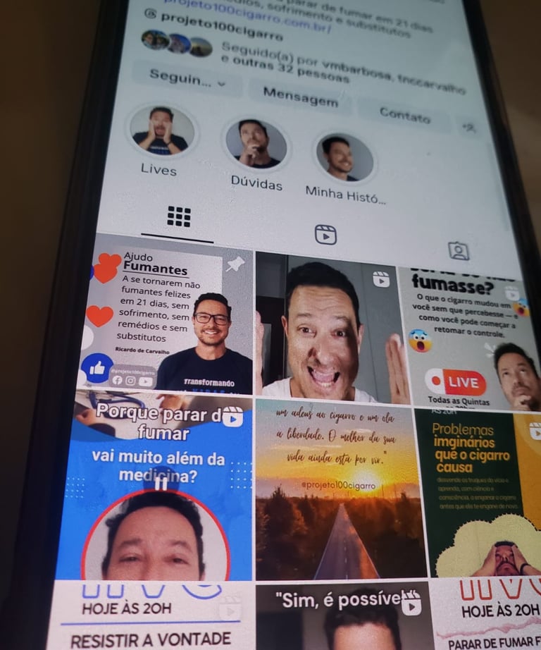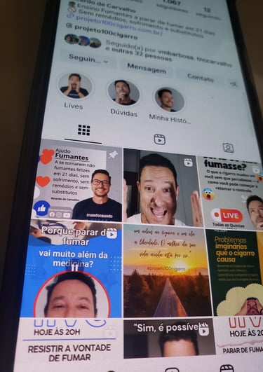 Acompanhe conteúdos diários, bastidores, reflexões, dicas práticas e minha jornada real para parar de fumar.